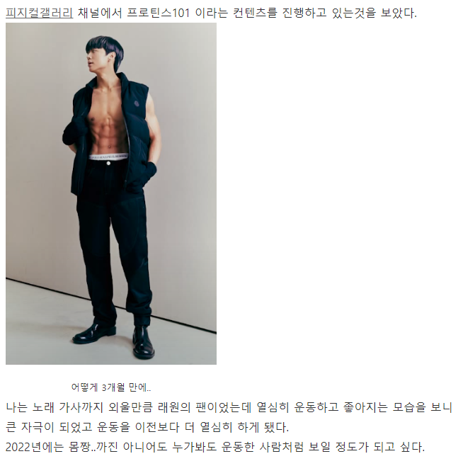 뜬금없지만 작품들을 보면서 구씨 몸이 너무 멋있어서 어떻게 운동해야 그렇게 될 수 있는지 찾아보다보니까