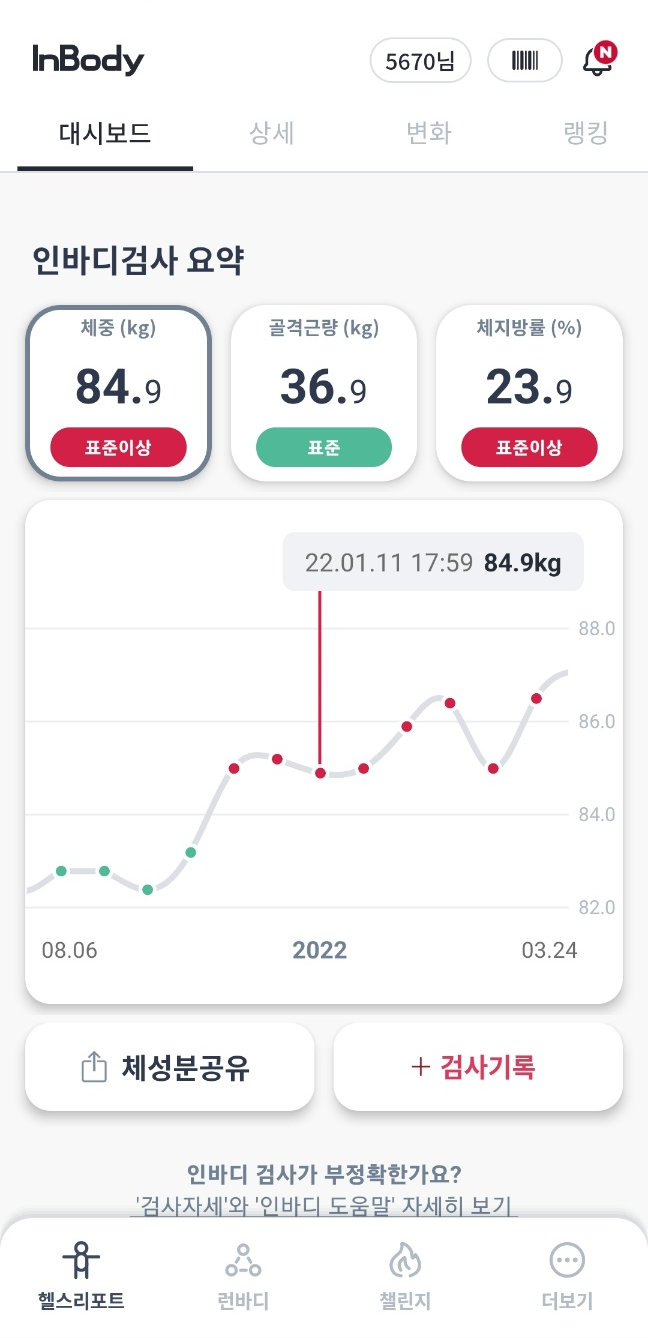 인바디 수치를 보니 운동을 너무 대충한것 같기도 하고...